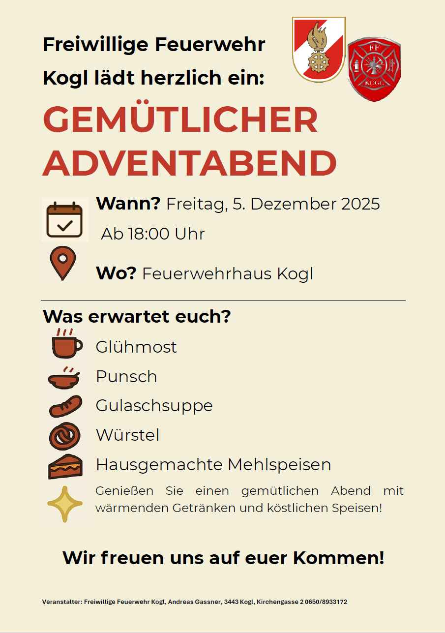Einladung zum gemütlichen Adventabend der FF Kogl