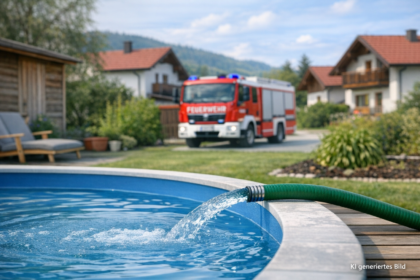 Aus aktuellem Anlass erinnern wir daran, dass das Befüllen von Schwimmbecken über das Hydrantennetz laut Gemeindeverordnung nur nach vorheriger Absprache mit der örtlichen Feuerwehr gestattet ist. Dies dient der Sicherstellung des Wasserdrucks für den Ernstfall.